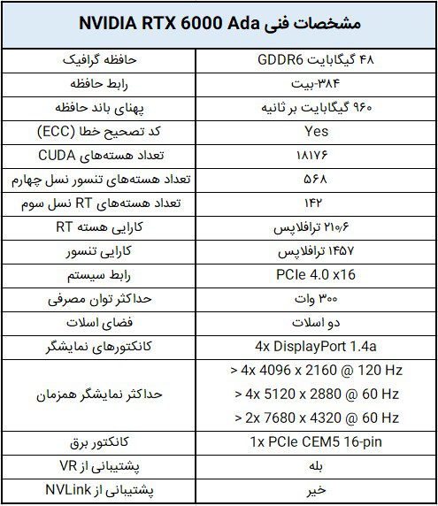 - RTX 6000 Ada برای کاربرانی که در سطح حرفهای و صنعتی فعالیت دارند و به دنبال بهترین عملکرد ممکن در زمینههایی مانند یادگیری عمیق، شبیهسازیهای پیچیده و رندرینگ پیشرفته هستند.