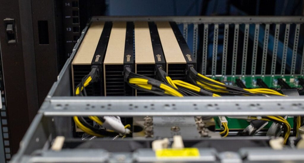 برای اهداف بررسی، سرور GPU AS-4125GS-TNRT سوپرمیکرو به صورت سیستم (Barebones) در اختیار ما قرار گرفت تا بتوانیم پردازنده، رم، حافظه ذخیرهسازی و البته GPUها را به آن اضافه کنیم. ما با همکاری سوپرمیکرو، چهار کارت گرافیک NVIDIA H100 را برای این بررسی قرض گرفتیم. پس از ورود به آزمایشگاه، اولین اقدام ما نصب یک جفت پردازنده AMD EPYC 9374F با 32 هسته و 64 رشته پردازشی بود. این پردازندهها به دلیل فرکانس بالای کلاک و عملکرد قوی در پردازشهای چند هستهای انتخاب شدند. برای شتابدهندهها، گزینههای متعددی از پردازندههای قدیمی Intel Phi گرفته تا جدیدترین کارتهای NVIDIA H100 PCIe و کارتهای RTX 6000 ADA در اختیار داشتیم. هدف ما ایجاد تعادلی میان توان محاسباتی خام، بهرهوری و تطبیقپذیری بود. در نهایت، تصمیم گرفتیم ابتدا از چهار کارت NVIDIA RTX A6000 استفاده کنیم و سپس برای آزمایشهای اولیه به چهار کارت NVIDIA H100 PCIe ارتقاء دهیم. این ترکیب، انعطافپذیری پلتفرم سوپرمیکرو و توانایی آن در پشتیبانی از انواع کارتهای شتابدهنده NVIDIA را به خوبی نشان داد.
