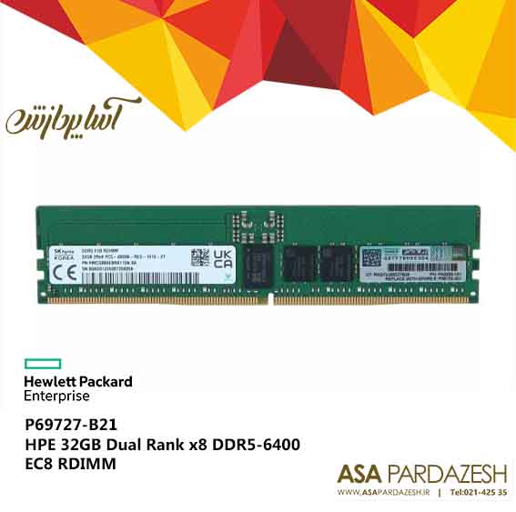 ماژول حافظه اچ پی HPE 32GB (1x32GB) Dual Rank x8 DDR5-6400 با پارت‌نامبر P69727-B21، یک ماژول حافظه ۳۲ گیگابایتی DDR5 با سرعت ۶۴۰۰ مگاهرتز است. این ماژول دارای تأخیر CAS 46-45-45  می‌باشد. حافظه‌های هوشمند DDR5 شرکت HPE برای مشتریان سازمانی کوچک تا بزرگ طراحی شده‌اند که نیاز به عملکرد و ظرفیت بالا دارند و در عین حال به مدیریت هزینه‌های کل مالکیت توجه می‌کنند. این حافظه‌ها بهینه‌سازی کامل حافظه سرور را امکان‌پذیر می‌سازند، با بالاترین سرعت انتقال داده کار می‌کنند و از جمله کارآمدترین حافظه‌های موجود از نظر مصرف انرژی هستند.