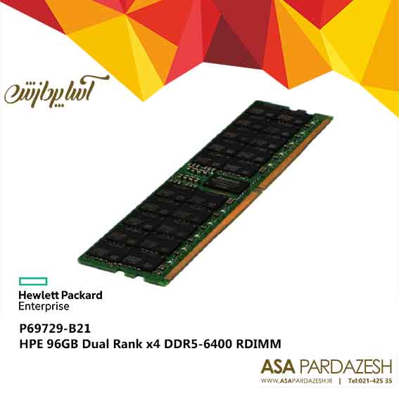 ماژول حافظه رم HPE 96GB (1x96GB) Dual Rank x4 DDR5-6400 با پارت‌نامبر P69729-B21، یک ماژول حافظه ۹۶ گیگابایتی DDR5 با سرعت ۶۴۰۰ مگاهرتز است. این ماژول دارای تأخیر CAS 46-45-45 و طراحی دو رنک x4 می‌باشد. حافظه‌های هوشمند DDR5 شرکت HPE برای مشتریان سازمانی کوچک تا بزرگ طراحی شده‌اند که نیاز به عملکرد و ظرفیت بالا دارند و در عین حال به مدیریت هزینه‌های کل مالکیت توجه می‌کنند. این حافظه‌ها بهینه‌سازی کامل حافظه سرور را امکان‌پذیر می‌سازند، با بالاترین سرعت انتقال داده کار می‌کنند و از جمله کارآمدترین حافظه‌های موجود از نظر مصرف انرژی هستند.